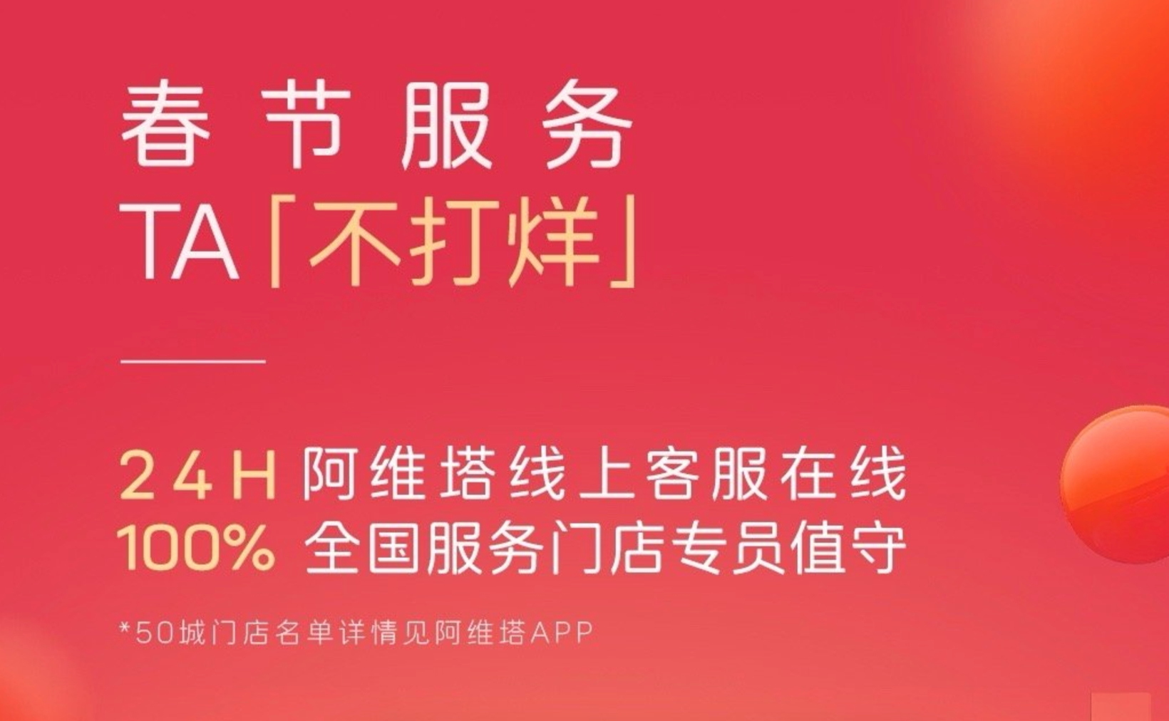 与此同时,车主自驾回家还可能会遇到各种突发问题,需要车企在后方做好保障工作。阿维塔公关副总监高全利发布的宣传海报就是,“春节不打烊,团圆时刻,小塔全程在岗”,以应对阿维塔车主在春节假期遇到的各种突发情况。