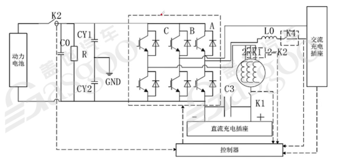 为了实现驱动和充电工况的分时复用,该技术通过电机中性点引出线,配合继电器、电感和电容组成的电路来完成。在驱动工况下,系统按照正常的电驱动模式工作;而在充电工况时,通过控制继电器的开合和电路参数的调整,将电机三相绕组作为充电电路的一部分,实现对动力电池的充电。这种分时复用的方式,有效提高了系统的利用率,减少了额外的硬件成本。