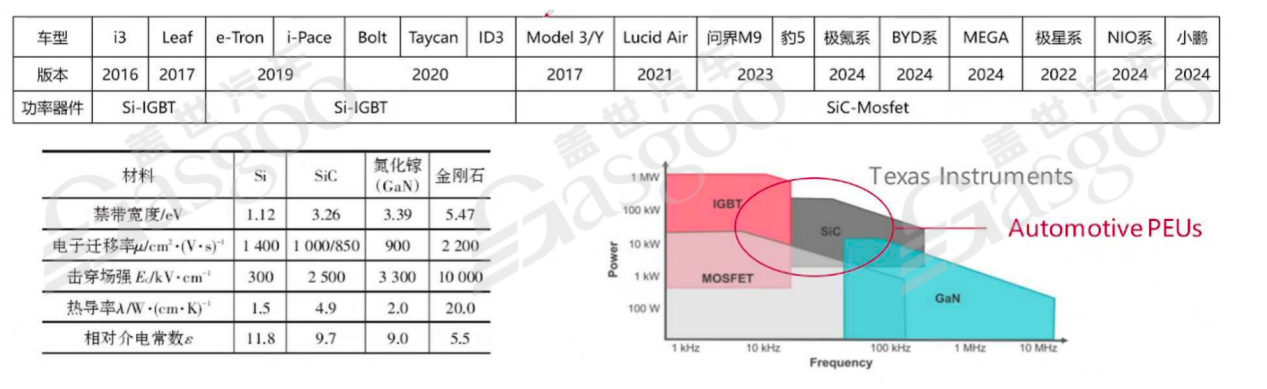 在实际应用中,许多新能源汽车已开始采用SiC MOSFET作为功率器件。如特斯拉Model3/Y、小鹏、问界M9等车型,均受益于SiC MOSFET的高性能,提升了车辆的动力性能和能效。不过,SiC MOSFET的成本相对较高,目前约为硅基器件的2.5倍左右,这也是车企在选型时需要综合考虑产量和车型定位等因素的原因。