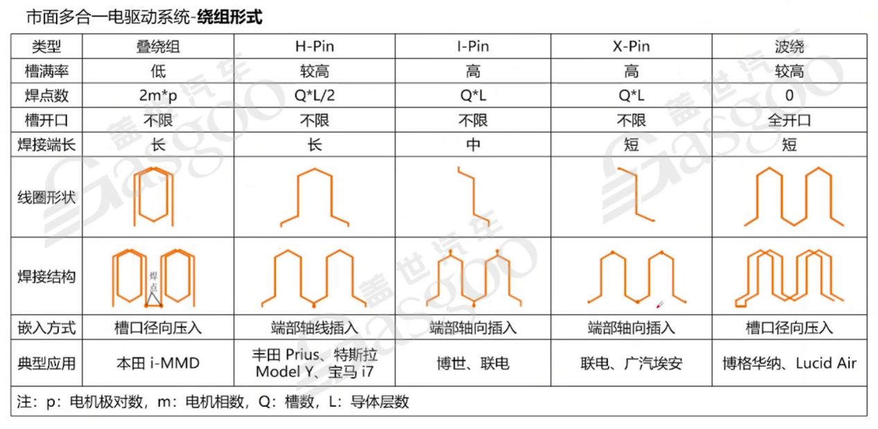 除发夹绕组外,常见的绕组形式还包括波绕、叠绕组、I-Pin、X-Pin等。这些绕组形式在槽满率、焊点数、槽开口、焊接端长、线圈形状、嵌入方式等方面存在差异,各有优劣。