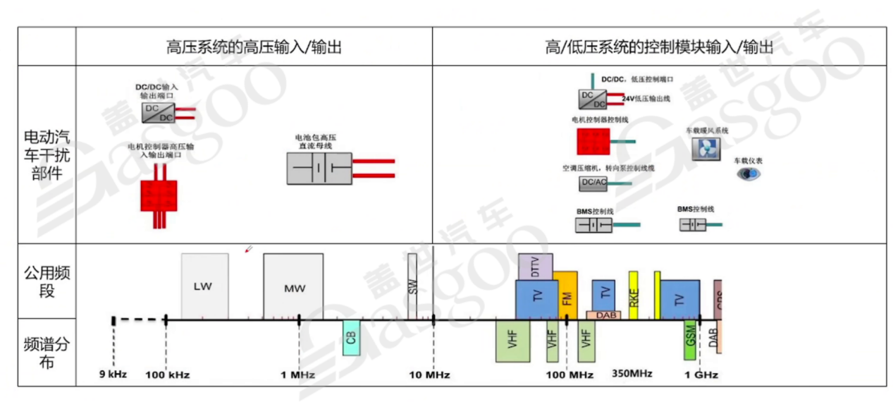 800V高压系统对电控系统的电磁兼容性(EMC)提出了更高的要求。高压系统的高压输入/输出、高低压系统的控制模块输入/输出,以及电机控制器、电池包等部件的相关线路,都是电磁干扰的敏感区域。在这些区域,不同频段的电磁干扰可能会导致电控系统出现故障,影响车辆的正常运行。