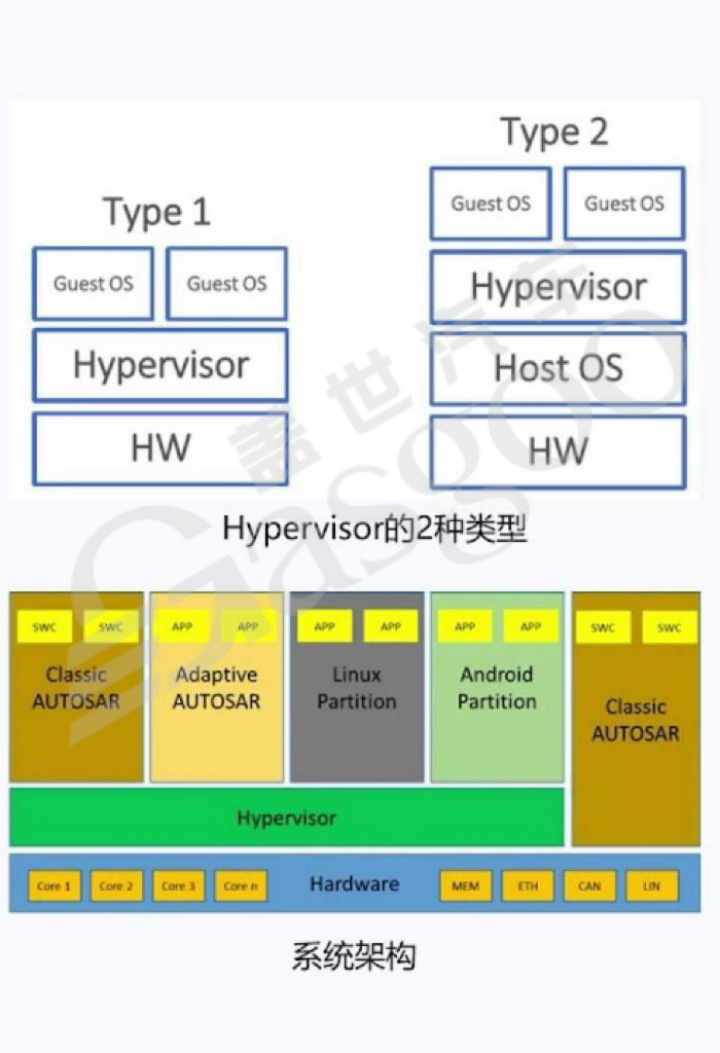 实现舱驾融合需要技术支撑。首先是Hypervisor技术,它如同“会下蛋的老母鸡”,对底层物理资源进行抽象,实现分时复用。在一台电脑中,Hypervisor可以让座舱系统和智能驾驶系统共享物理资源,如CPU、GPU、DPU、VPU、NPU等。根据不同需求,可采用固定分配或动态分配资源的方式,目前常见的是固定分配,如将8个CPU核中的4个分配给座舱,4个分配给智能驾驶。Hypervisor有Type 1和Type 2两种类型,Type 1类似于在Windows系统上通过VMware运行Linux系统,Windows系统既可以运行自身进程,也可以支持虚拟机运行;Type 2则更为纯净,其宿主操作系统仅负责维护基础服务,应用程序全部在虚拟机中运行。不同公司根据自身情况选择不同类型,如高通采用黑莓的QNX操作系统时选择Type 1。