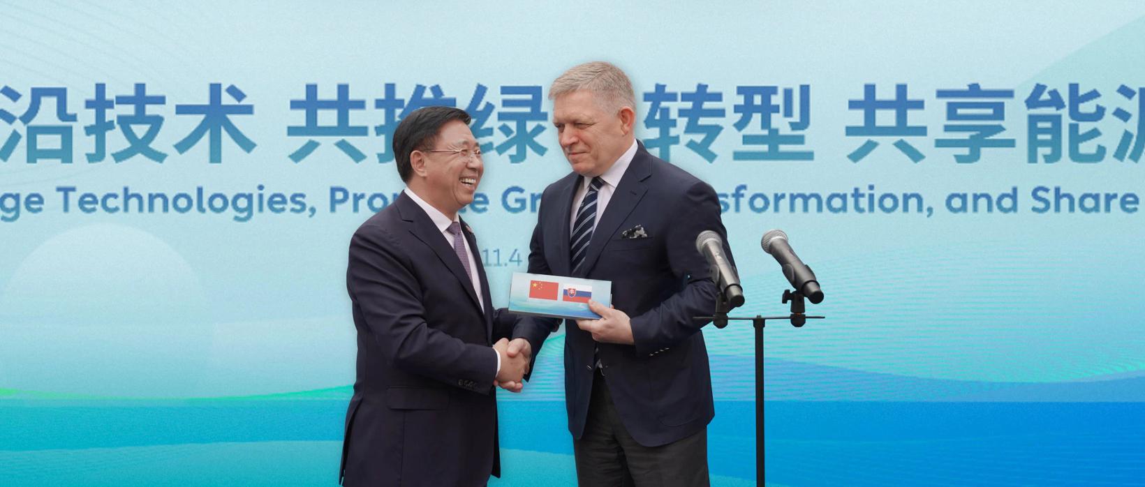 国轩高科董事长李缜向斯洛伐克总理菲佐赠送标准电芯模型