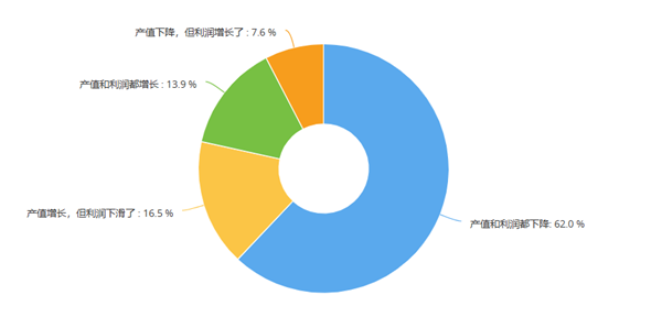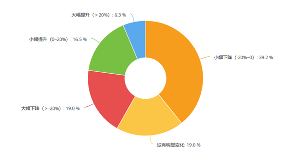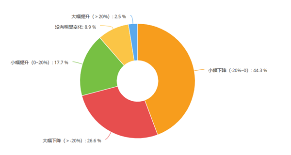 单车产值下滑的门店达到58.2%,其中下滑幅度超过20%的门店占比近两成;单车产值增长的门店为22.8%。