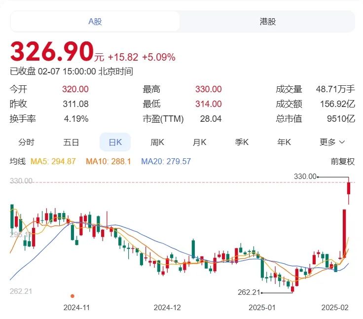 另一个年后股价大涨的品牌就是比亚迪,2月6日涨停,2月7日大涨5个点,将近创历史新高,可见资本对此的重视程度。