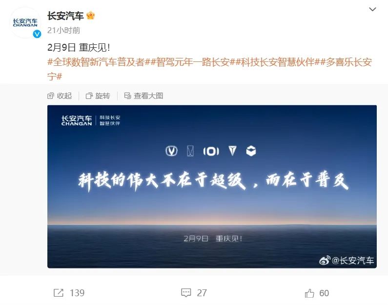 此外,长安汽车也宣布在2月9号将会开启发布会,同样与普及智驾相关,可见高阶智驾的普及势在必行。