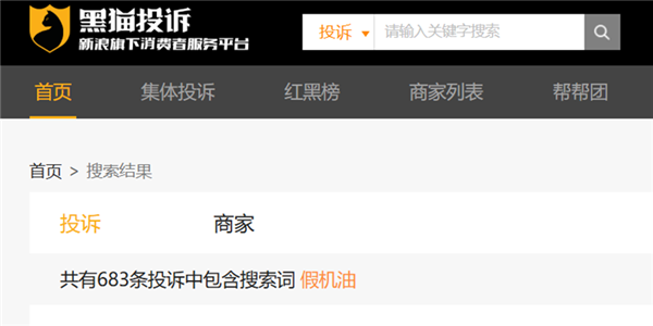 此类网购假机油事件并非孤例,以“假机油”为关键词在黑猫平台搜索,竟发现近一个月相关投诉案件多达680起。