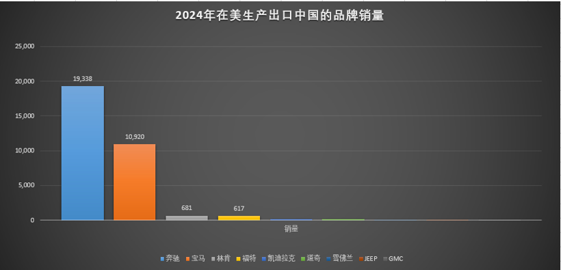因为,根据相关统计测算,以2024年进口美国车型销量数据为基准的话,这次共涉及3.2万辆。其中,涉及美国品牌车辆1862辆,占比5.8%。涉及德国奔驰品牌1.9万辆、宝马品牌1.1万辆,合计3万辆,占比94.2%。实际上,反而是德系受的影响占了大头。
