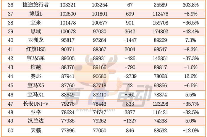 ▍燃油车TOP50:超过一半车型下滑,但总量并未垮塌