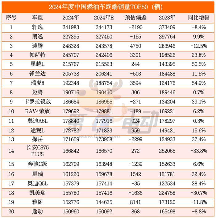 如此复杂立体的画面,该如何总结呢?2024年最后一天,我们为您整理了本年度中国车市最畅销的50款乘用车(包括燃油车和新能源车),并做一些粗浅的分析和对比,希望通过这个整理,帮助您回顾令人难忘的2024年。