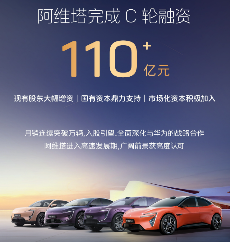 最大的一笔要数阿维塔,12月17日,阿维塔获得了C轮融资,融资额超110亿元,占12月车企融资的三分之一。