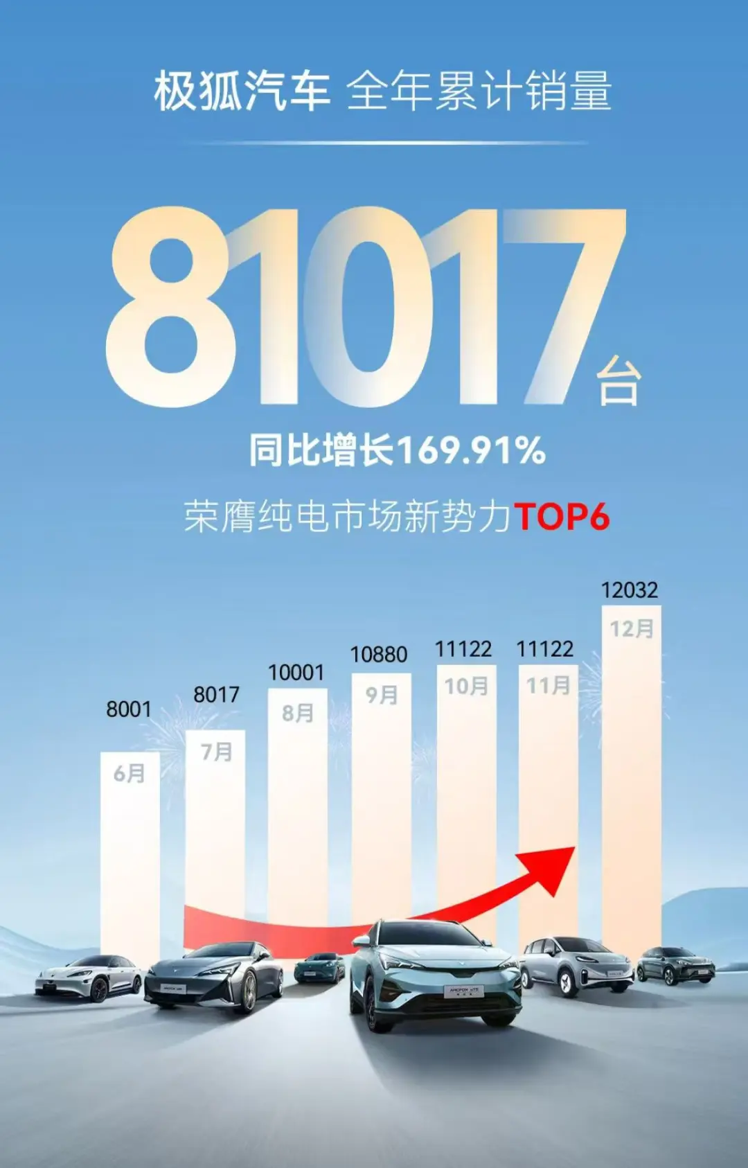根据极狐汽车方面公布的销量数据,整个2024年,极狐汽车实现全年累计销量81017万台,同比增长高达169.91%,在顺利完成2024年的年度目标的同时,还实现了连续3年实现销量翻番。