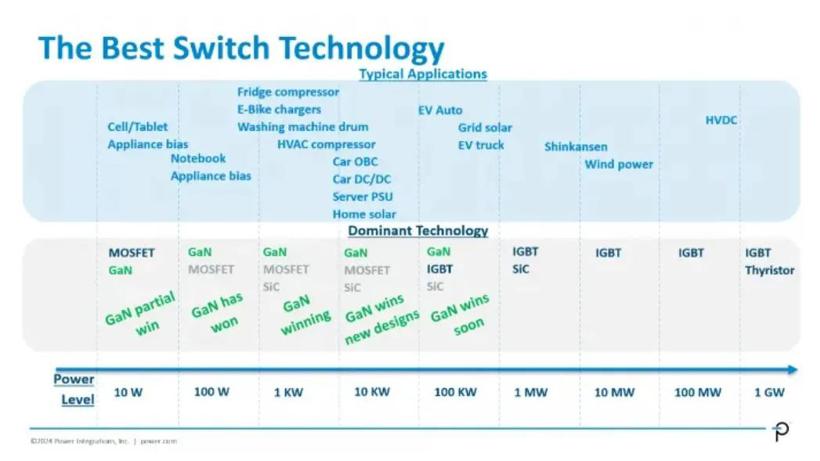 Power Integrations(PI)公司营销副总裁Doug Bailey今年曾指出,在电动汽车牵引领域,尽管目前人们一直在尝试使用碳化硅,但氮化镓最终将实现这一目标。