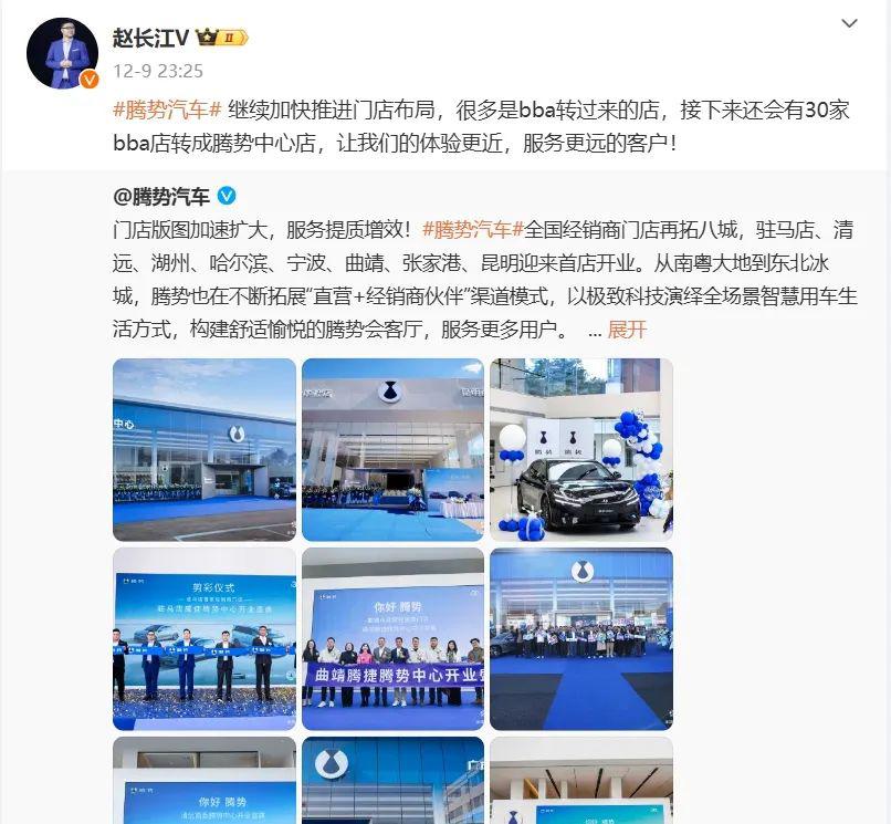 腾势汽车销售事业部总经理赵长江在社交平台透露,腾势正积极推进门店布局,许多原BBA经销商已转为腾势中心店,未来还将有30家BBA门店加入。
