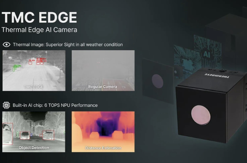 Thermoeye Inc:热成像AI相机TMC EDGETMC EDGE是一款专为自动驾驶、机器人、无人机等应用设计的热成像AI相机。这是世界上第一款能够同时进行距离估算和物体检测的热成像AI相机。使用TMC EDGE不需要额外的距离传感器,确保硬件设计中能有更多空间和更高效率。TMC EDGE配备了高分辨率和高灵敏度的热图像传感器,即使在恶劣天气(如雨、雪、夜和雾)下也能提供完全的能见度,这是常规RGB摄像头和激光雷达几乎不可能实现的功能。