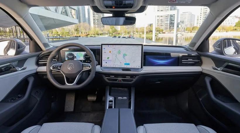 途观L Pro以及新款帕萨特等,座舱基于大众集团的换代车型,人机交互界面包括新的液晶多功能仪表盘,以及15英寸的新一代车机系统。但同时又基于本土化因素更进一步,在副驾位置配备了一块娱乐屏。