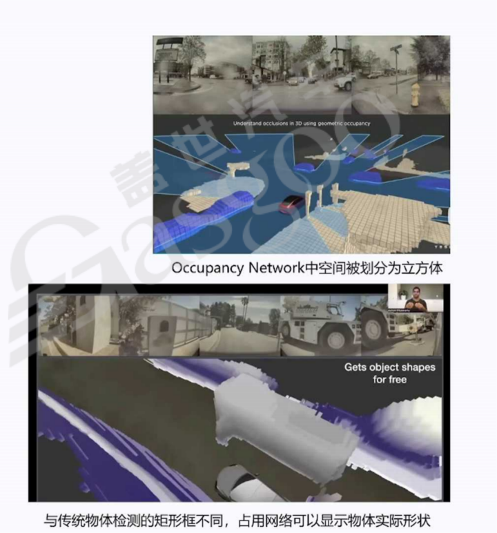 O占用网络(ccupancy Network)是特斯拉为解决视觉长尾问题提出的模型。该模型将周边空间划分为小立方体,通过预测3D空间的占用概率(0/1)来还原目标物的形状和位置,并利用神经辐射场(NeRF)的可微分渲染图像进行监督训练。