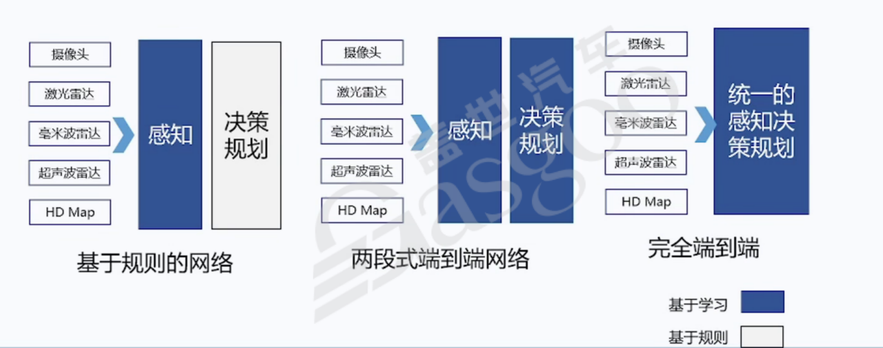 传统自动驾驶方案按感知、预测、规划、控制的顺序依次执行,结构简单、可解释性强,但存在规则复杂、场景泛化性不足的问题。端到端方案则融合了这些模块,形成一个统一架构,通过传感器输入,直接完成从原始数据到轨迹或控制信号的映射,更符合人类驾驶原理,具有更高的上限。