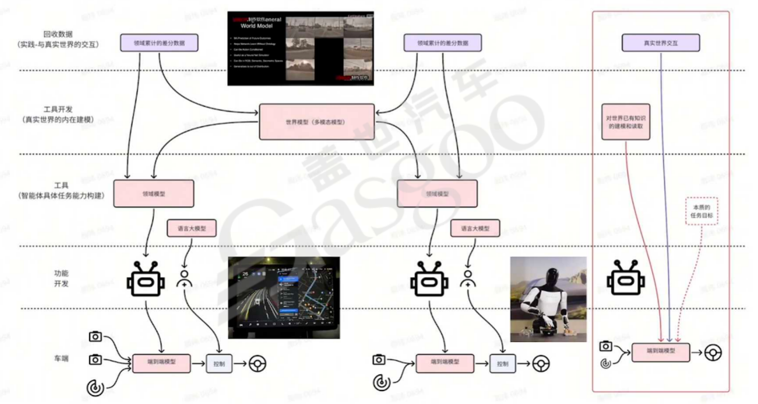 通用模型则致力于提升认知维度,构建更强大的基础模型。以特斯拉为例,它在追求世界模型的过程中,希望通过通用模型提升对世界的整体认知能力。同时,特斯拉也会基于通用模型,进一步训练行业细分模型,以满足不同业务场景的需求。