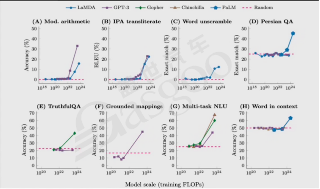 大模型具有一些独特的关键特点。涌现现象是其中之一,当模型规模达到某个阈值时,模型对某些问题的处理性能会呈现快速增长,这被称为涌现能力。这种现象类似于物理上的相变,即量变引发质变。例如,在自然语言处理任务中,一些大模型在规模达到一定程度后,在算术运算、单词重组、语言翻译、问答等任务上的表现有显著提升。目前,学界和业界都在深入研究涌现现象产生的原因,主流观点是通过数学和物理学方法解释其内在机理,如从信息熵、自由能最小原则等角度进行探索。这不仅对模型设计人员确定技术路线至关重要,也涉及到智慧产生的本源问题。