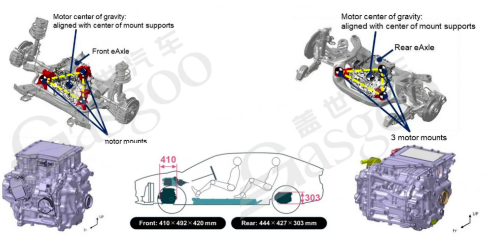 车轴设计可实现从低速瞬间产生高扭矩,电机安装系统能最大限度减少轴的位移,保持车辆稳定性。为实现优异驾驶性能,需确保驾驶员不会因加速器操作引起的电机扭矩波动而感到不适,这些设计措施有助于降低噪音,提升乘坐舒适性、稳定性和驾驶性能。