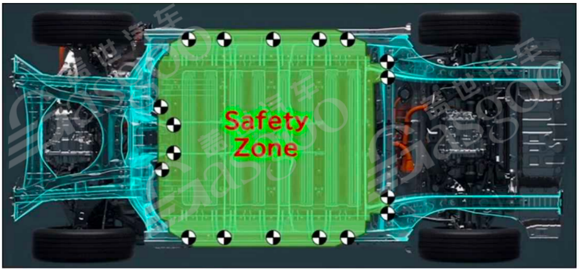 此外,电池包安装在车身上时,要确保静态高度高于一定水平的横摇高度,使电池外壳增加车身高度,提升车辆的扭转刚度,确保性能优于其他标杆车型。