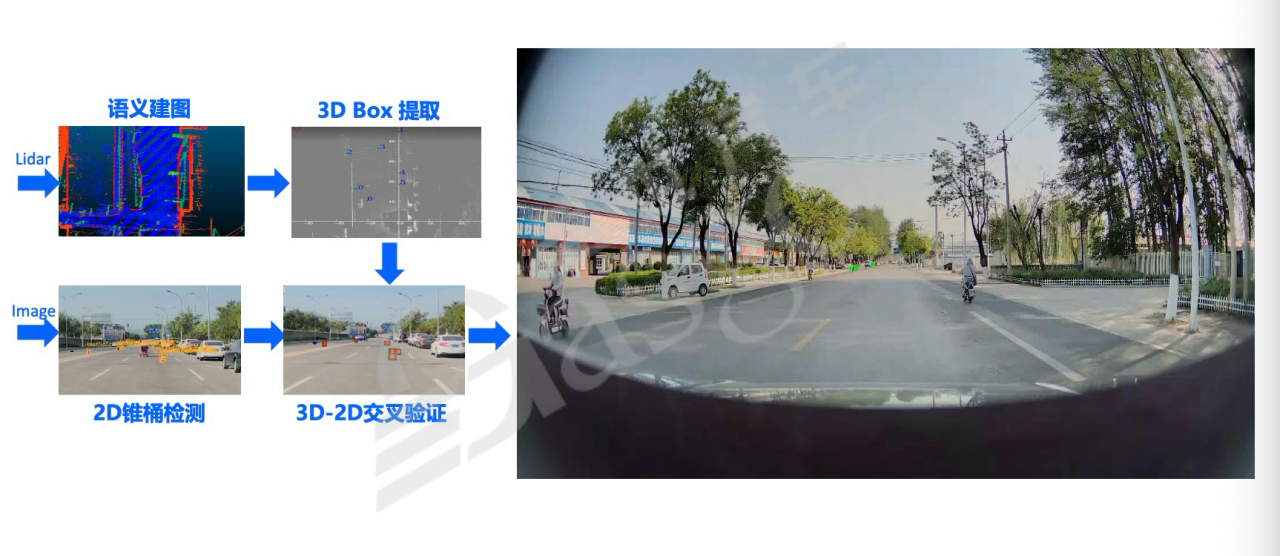 以锥桶标注为例,由于现有激光雷达模型中无锥桶类别,采用先做语义图提取3D bounding box伪标签,再与2D检测结果交叉验证的方式输出标注结果。这种方法充分利用了激光雷达语义分割中有类似障碍物类别的特点,有效解决了锥桶标注难题。