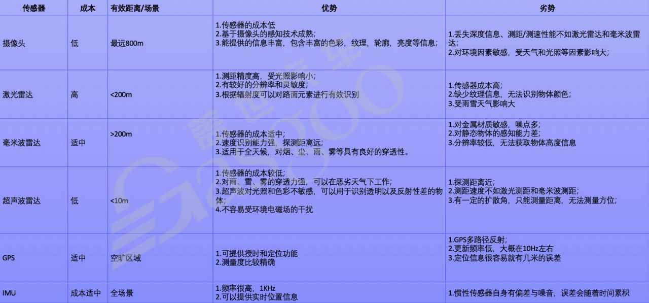 自动驾驶常用传感器包括摄像头、激光雷达、毫米波雷达、超声波雷达、GPS和IMU(惯性测量单元)。