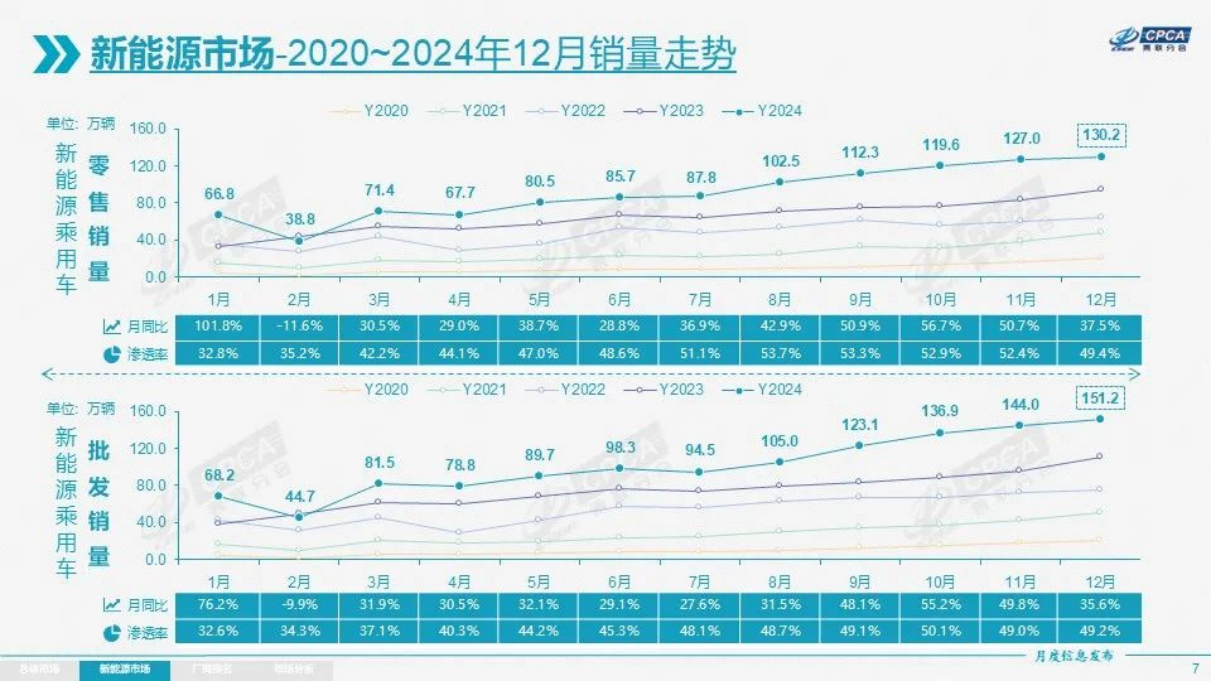 但必须点出的是,2024年12月新能源零售渗透率未能突破50%大关,某种程度上也在印证传统燃油车的“腹地”即便已经被成功攻破,但距离做到真正意义上的摧城拔寨,还有很长一段路要走。